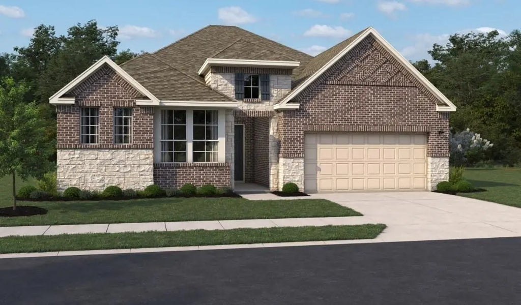 Beautiful single-story home with a three-car garage, ideally situated on a quiet cul-de-sac. The Brooke floor plan offers a smart, functional layout designed for comfortable everyday living. An open-concept family room flows seamlessly into the kitchen, creating an ideal space for entertaining and gathering. The home offers abundant storage with oversized hall closets and walk-in closets in every bedroom, plus a dedicated study for work or flex use. Stylish finishes and quality craftsmanship shine throughout, featuring the AW Collection Coastal palette with white cabinetry, modern blue tile backsplash, and light, breezy textures for a relaxed, staycation-inspired feel. Located in Sunterra Lakes, Brookshire’s newest master-planned community, residents enjoy access to the Crystal Lagoon, sandy beaches, and the vibrant Amenity Village.