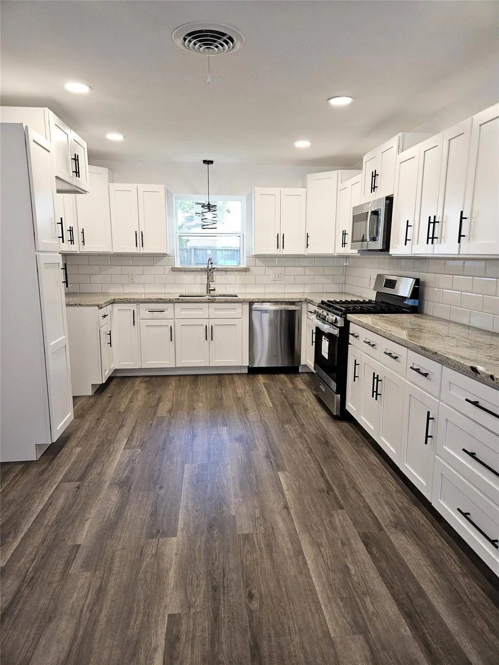 Step into this beautifully updated home with exceptional living space created by recent upgrades. The kitchen is completely redone with soft-close cabinets, granite counters, GE SS appliances, a SS undermount sink/faucet, and new recessed lighting. New LVP flooring is throughout, with tile in bathrooms and laundry. Bathrooms feature new vanities, tile floors, refined tilework around shower/bathtub areas, and one bath has a stunning tiled walk-in shower with a sliding glass door and all new hardware/fixtures. Energy efficiency is enhanced with *new energy-efficient windows and a *new upstairs HVAC unit. New light fixtures and recessed lighting are added throughout, along with stylish ceiling fans. Beyond the interior, *recent plumbing drain lines replaced. Significant benefits include not being in a flood zone and having no HOA.