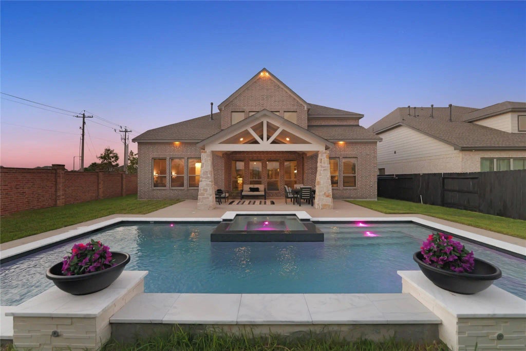 Welcome Home!! This stunning 4-bedroom, 3.5-bath home is one of Westin’s most sought after plans, the Preston III. Offering elegance, comfort, and functionality in one of the most desirable communities. From the grand foyer with a curved staircase to soaring ceilings that fill the home with natural light, every detail is designed to impress. The open-concept kitchen and family room create the perfect space for entertaining. Work from home with ease in the private study, then unwind in the media room or enjoy family fun in the oversized game room. The owner’s retreat is a sanctuary, featuring a spa-like bathroom. Upstairs you’ll find three spacious bedrooms for family and guests alike. Step outside to your backyard oasis with a sparkling pool and covered patio, perfect for year-round enjoyment. Located in the vibrant master-planned community of Lago Mar, this home pairs luxurious design with resort-style amenities, including a crystal-clear lagoon, trails, and recreational spaces.