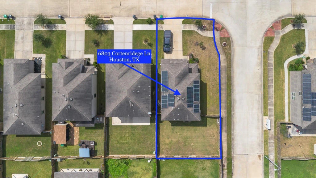 Welcome home to 6803 Cortenridge Lane! This lovely 3 bed/3 full bath two story built in 2017 rests on a premium corner lot. One of the best features of this home is that it comes equipped with fully PAID OFF solar panels to keep your electricity bill low during the summer months AND an Electric Vehicle charging port in the garage. Upon walking into the home you will be greeted by a built-in bench with coat hangers and extra storage space. The first level features a dining area, kitchen that opens up to the family room, and one full bedroom/ bathroom. The kitchen features granite countertops, a gas range, and all stainless steel appliances that convey with the sale! Upstairs is a spacious loft/game room, primary and guest bedrooms, and a conveniently located utility room. The spacious backyard is perfect for summer get-togethers/family gatherings. What are you waiting for? Schedule a showing today!