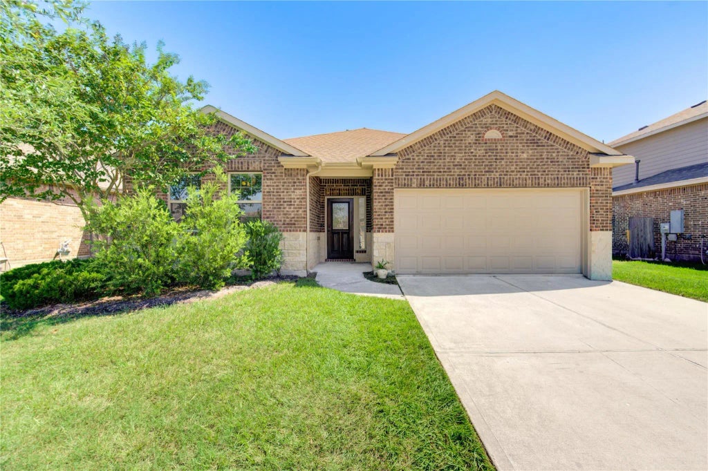 This beautiful DR Horton home nestled in Herons Landing features a brick and stone exterior, split floor plan, wood-look luxury vinyl plank flooring & a covered rear patio overlooking a spacious backyard. The kitchen boasts a gas range, black appliances and a versatile island with a breakfast bar that seamlessly connects to the living and dining areas. Retreat to the oversized primary suite featuring crown molding, a lavish bathroom with a soaking tub, separate shower, dual vanities and a walk-in closet. Home has no carpet & the garage floor has been coated/sealed. Just minutes to schools, shopping, and nearby recreation. Call today to schedule a showing!