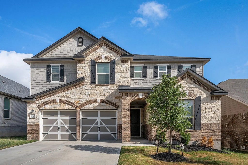 4-bedroom, 2.5-bath home with oversized primary suite featuring soaking tub and his-and-hers walk-in closet. Large downstairs office can serve as an additional bedroom. Open main level includes bright living area, dining space, and kitchen with dark cabinetry, backsplash, expansive counters, island seating, stainless appliances, pantry, and storage. Fenced backyard ideal for pets or play. Located near Lackland AFB, H-E-B, shopping, and dining.