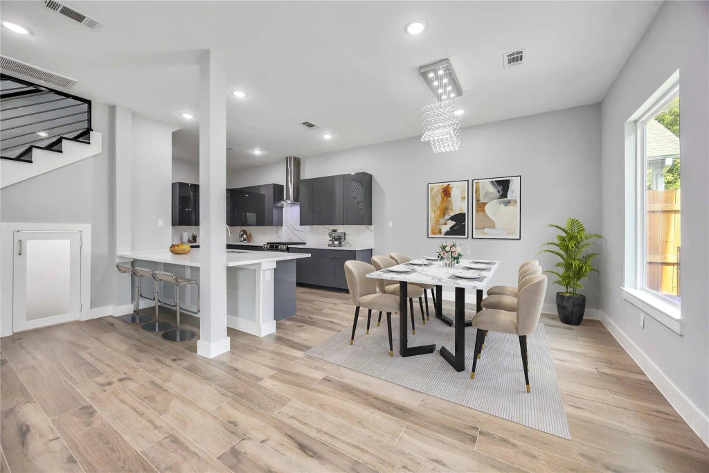 Modern Rosslyn Heights home with 3-4 bedrooms, 3.5 Bathrooms and 2-car garage. No HOA. This custom modern home is one of a kind. Open floor plan with All quartz fire place and tons of natural lights. Percaline tiles on the first floor and LVP Luxury flooring on the 2nd floors. The kitchen faucet is touch system and has Stairs All solid wood, European style soft close cabinets. Full quartz back splash, Quartz counter top with island, stainless steel, energy efficient appliances and a Glass steel hood. Beautiful Chandeliers in the dining and 22 ft high foyers. The primary suite is very impressive with a large soaking tub, separate shower dual vanity. The walking closet with built in shelf. Too many upgrades to mention. Washer, Dryer and refrigerator included. This house is perfect for family gatherings and for entertaining. Walking distance from White Oak Bayou Trails and TC Jester Park. Don’t miss out on this beautiful stylish home. Will not last long.
