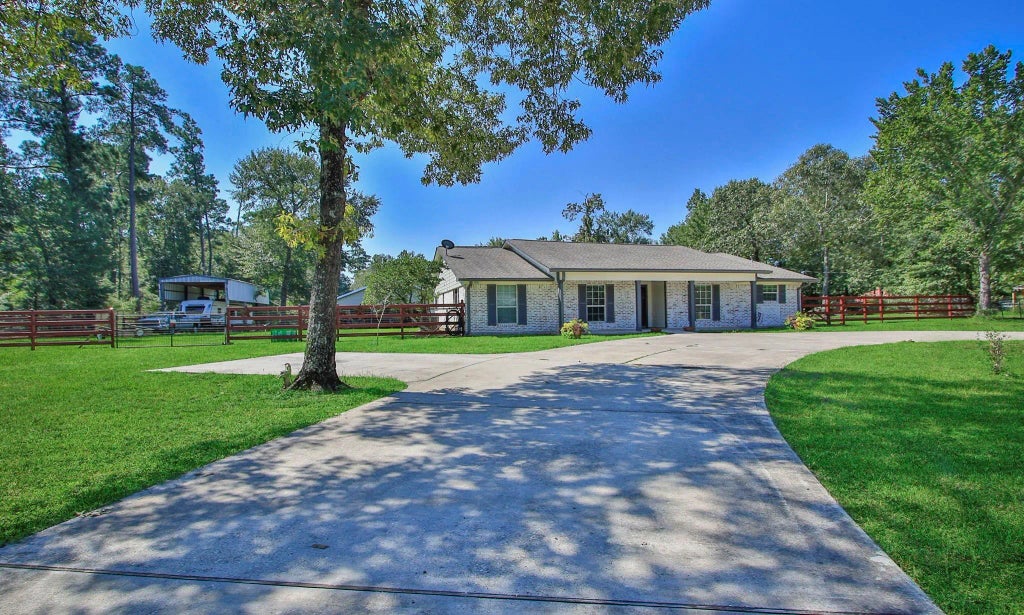 Located in Tomball ISD & Montgomery County. PRICE REDUCED! One story updated home on 3 acres. German white wash brick. Open floor plan from kitchen -den -dining area. A large island with quartz countertops & gas cooktop with down draft. Large farm house kitchen sink. Gas log fireplace. 3 bedroom home. One bedroom is being used as an office at the moment. 2 walk in closets in Primary bedroom. Covered front & back porchs with bead board ceilings. Tankless water heater. Covered RV/Boat storage. Barn with 3 car carport. Great workshop area. Fenced back yard. Well & Septic with no MUD taxes. Country life close to SH 249 & minutes away from 99. So many updates to list. No flooding to this property. Light restrictions. Low HOA dues. No MUD fees.