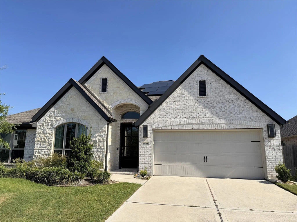 Welcome to a stunning Perry Home, in the desirable Stone creek community! Built in 2022, this spacious 4-bedroom, 3bath residence offers well-designed living space on a single story, ideal for both everyday comfort and entertaining. Home office with French doors set at entry with 12-foot ceiling. Formal dining room overextended entry. Spacious family room with wall of windows opens to kitchen and morning area. Kitchen features corner walk-in pantry and generous island with built-in seating space. Primary suite includes bedroom with 12-foot ceiling. Dual vanity, garden tub, separate glass-enclosed shower and deep walk-in closet in primary bath. All bedrooms include walk-in closets. Extended covered backyard patio. Two-car garage. Solar panels and sprinkler system included.