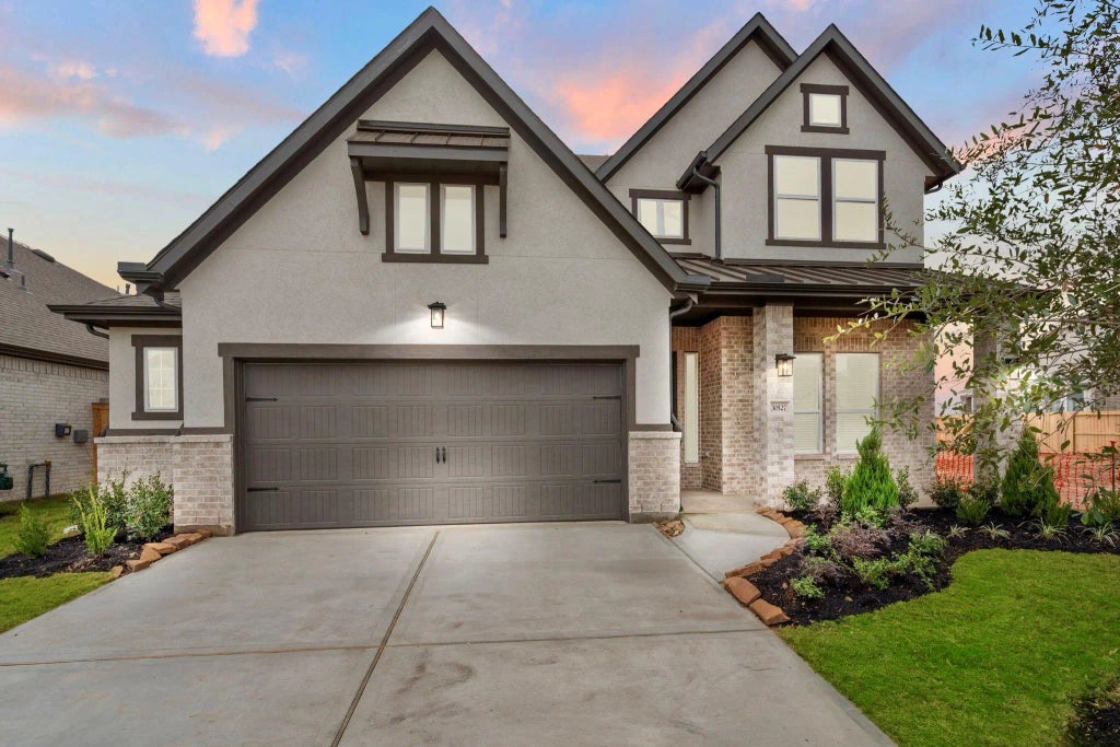 Welcome to the Medina by Chesmar Homes, a stunning two-story backing to a peaceful green space with no rear neighbors and a partial lake view from the back patio. An inviting large front porch sets the tone as you enter through a dramatic foyer with soaring two-story ceilings that continue into the family room. The open-concept layout features a spacious kitchen and dining area overlooking the extended covered patio—ideal for outdoor living and entertaining. A cozy fireplace option enhances the family room’s ambiance. The first floor includes a private primary suite and a secondary bedroom, perfect for guests. Upstairs offers three additional bedrooms and a generous game room providing flexible living space for family or entertaining. Thoughtful upgrades include the extended patio and picturesque setting, offering extra privacy and scenic views. This beautifully designed home blends comfort, function, and an exceptional location.