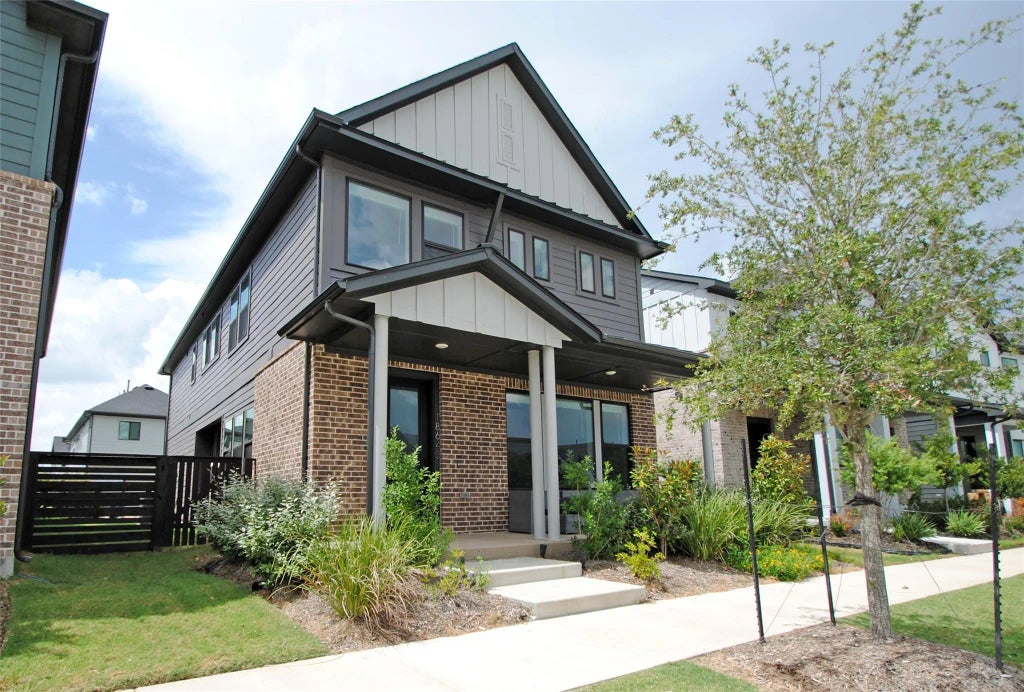 Step into the charm and comfort of The Enterprise in Bridgeland's Parkland Row—a Modern Farmhouse retreat designed for stylish living. The open-concept kitchen and family room create the perfect space for casual gatherings, with a spacious island anchoring the heart of the home. Sunlight fills every corner through abundant windows, making the interiors feel bright and welcoming. Your private owner's retreat offers a peaceful escape, while the back patio is an ideal spot for morning coffee or evening relaxation. Built by David Weekley Homes, this energy-efficient haven features a Diamond Level Environments for Living certification, ensuring comfort and sustainability. Experience the resort-style amenities of Bridgeland while enjoying the timeless charm of a Traditional Neighborhood Design. Conveniently located, close the future HEB, restaurants and Hospital. Water filter system in kitchen is included. The refrigerator, washer and dryer may be available with an additional offer.