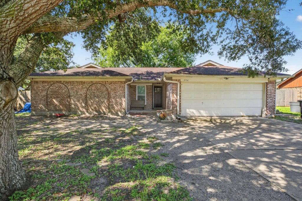 Charming 4-bedroom, 2-bath home in a well-established neighborhood. This inviting property features a spacious family room with vaulted ceiling, laminate flooring, fresh paint, and a cozy fireplace. The kitchen and breakfast area include tile flooring, durable countertops, and a window with a view of the screened patio. All four bedrooms are generously sized. The primary suite offers dual closets and a tiled tub/shower. Enjoy the additional covered patio overlooking the large, fenced backyard with plenty of space for a pool or outdoor entertaining.
