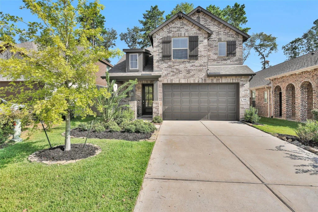 Welcome home! This spacious 4 bed, 3.5 bath, 2-story Highland Home is nestled on a quiet cul-de-sac street in the highly sought-after Woodlands Hills community. Inside features elevated ceilings with 8’ doors, stunning LVP flooring, quartz counters & stainless steel appliances. The primary suite is on the 1st floor with a bay window and attached ensuite with a stand-alone tub, double sinks & a recessed shower with floor-to-ceiling tile. The downstairs powder bath includes an upgraded vanity. Upstairs you'll find an oversize gameroom, 3 guest suites & 2 full baths. Enjoy coffee on front or back covered porches overlooking the manicured landscaping with a sprinkler system. Upgrades include smart home tech, gutters & tankless water heater! The Woodlands Hills is a master-planned community just outside Conroe, Texas with easy access to The Woodlands & Houston. Amenities include multiple pools, 20+ parks, an activity center with state-of-the-art fitness & miles of trails!