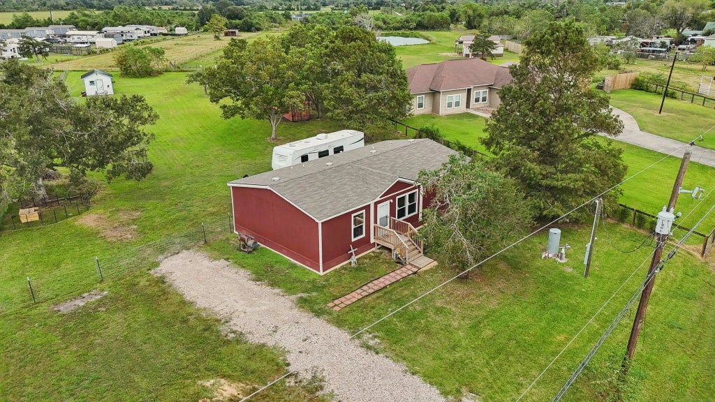 CONEX stays! This unrestricted 2023-built home offers 1,344 sq. ft. of modern living with 3 bedrooms and 2 baths. Constructed with durable Hardi board siding and skirting, the home is partially built on a slab, ensuring stability and longevity. Inside, you'll find an open-concept layout featuring a large kitchen with an expansive island, ideal for meal prep and bar seating, and ample storage throughout the home. The split floor plan ensures privacy with the primary bedroom separated from the additional rooms. Situated on a 1-acre lot, with mature pecan trees, the property is fully fenced and includes a convenient storage shed. There's also plenty of room and opportunity to build an additional home or workshop and gardens. Located within the desirable Santa Fe ISD and close to shopping, dining, and entertainment, this property provides a perfect blend of tranquility and accessibility. Ideal for those looking for space, flexibility, and convenience! Washer and dryer included!