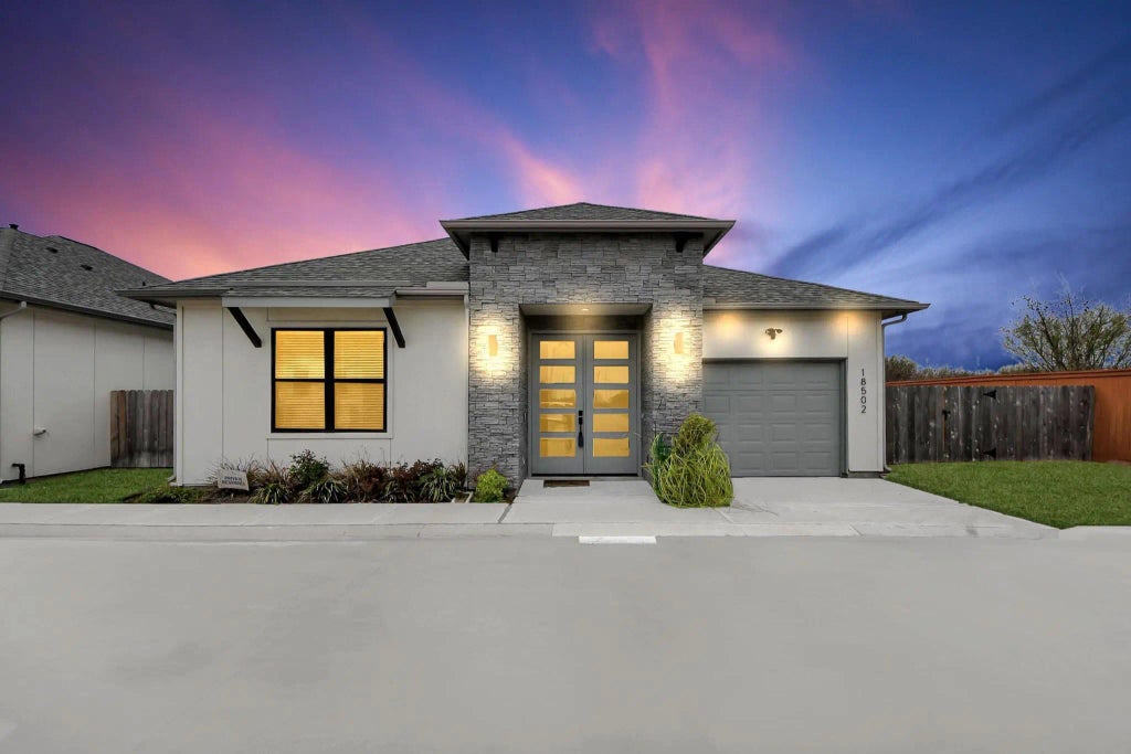 55 + Community Experience the charm of this meticulously maintained one-story home in a sought-after gated 55+ community. Designed for comfort and easy living, this lightly lived-in residence features 3 bedrooms, 2.5 baths, a covered patio, and an attached garage. A stunning stucco and stone exterior welcomes you through grand double doors into an inviting open-concept layout with engineered wood flooring throughout. The gourmet kitchen is both stylish and functional, boasting Quartz countertops, an island with seating, a sleek tile backsplash, stainless steel appliances, and upgraded soft-close wood cabinets with pull-out drawers. The spacious primary suite offers a walk-in closet, while the primary bath includes dual sinks, a fully tiled shower, and an additional handheld showerhead for convenience. Beyond the home, enjoy the perks of an active 55+ community, complete with an inviting clubhouse and fantastic amenities. A perfect blend of elegance and ease—this home is a must-see!