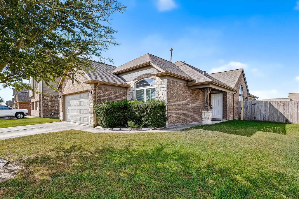 Welcome to this inviting Rosenberg home featuring a spacious living room that opens seamlessly to a modern kitchen with bar seating, perfect for entertaining or everyday living. The kitchen flows into the dining room, creating a bright and open layout for family meals or gatherings. The primary bedroom serves as a private retreat with an ensuite bath, complete with dual sinks, a vanity area, and a walk-in shower. Two additional bedrooms offer flexibility for a home office, guest space, or hobby room. Step outside to a fully fenced backyard, ideal for outdoor dining, play, or relaxing in privacy. Located in a welcoming community, this home offers convenient access to nearby shopping, dining, and entertainment options. With easy access to major roadways, commuting throughout Rosenberg and the surrounding Houston area is simple. Combining comfort, functionality, and location, this property is an excellent opportunity for its future owners.