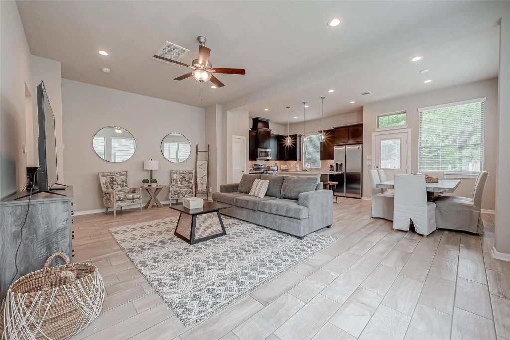 FULLY FURNISHED amazing townhome located at the master community of Woodforest. Everything but your toothbrush. Enjoy this barely lived townhome while taking advantage of all the amenities this great community has to offer. Three bedrooms up, plus family room, open kitchen/dining/living area on the first floor and a huge backyard that backs to a wooded reserve.