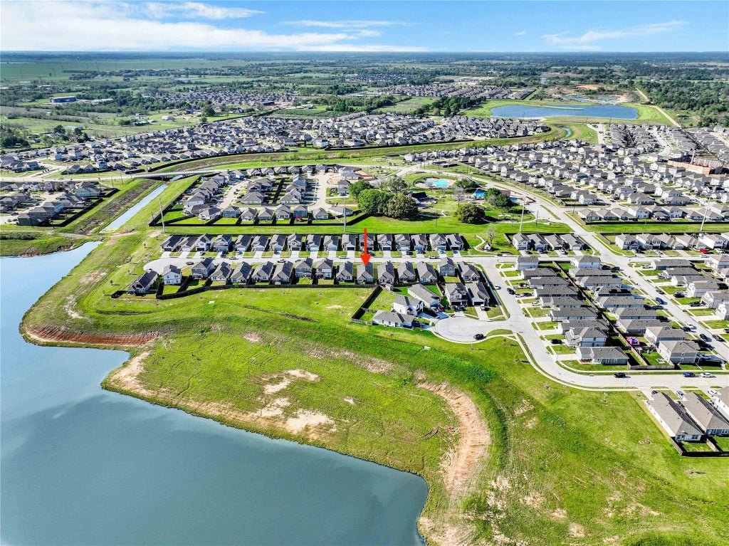 Welcome to 23823 Escardilla Dr of Hockley, a wonderful lake view home. The home is move-in-ready 3-bedroom, 2-bath & an office or 4th bedroom, located on a lake lot and NO REAR NEIGHBOR.. Built in 2024, this single-story home features a bright, open-concept layout with high ceilings and modern finishes. The kitchen is equipped with granite countertops, stainless steel Whirlpool appliances (including a 5-burner gas range and built-in air fryer), 42” cabinets, and a large island perfect for cooking and gathering. The primary suite includes a walk-in closet and ensuite bath with dual vanities, while two additional bedrooms offer flexibility for family or home office use. Enjoy a covered patio, fully fenced backyard, and access to excellent community amenities including a pool, playgrounds, basketball court, and dog park. Located near Hwy 290 and zoned to Waller ISD, this home combines comfort, functionality, and convenience in one great package.