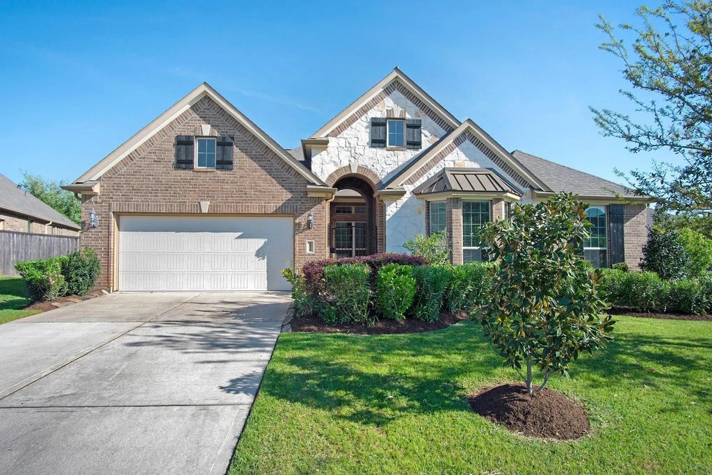 Beautiful 1.5-story brick and stone home on a desirable corner lot in Long Meadow Farms. Charming front courtyard welcomes you inside to a private study with French doors, formal dining, and a spacious family room. The open kitchen features granite countertops, abundant cabinetry, and a bright breakfast area. The primary suite offers generous space, dual sinks, separate jetted tub and shower, and a large walk-in closet. Three secondary bedrooms are conveniently located downstairs with a full bath and an additional half bath. Upstairs includes a huge game room, media room, and full bath—perfect for entertaining. Enjoy a covered patio in the backyard for outdoor living. Prime location near Hwy 99, shopping, dining, and amenities.
