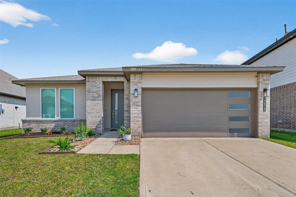 Step into modern living in this beautiful 4-bedroom, 2-bath home located in sought-after Ventana Lakes. The contemporary, open floor plan is perfect for both every day living and entertaining. Features include a kitchen breakfast bar, quartz countertops, 5-burner gas cooktop, built-in drinking water filtration, 42" flat panel maple cabinets, & under-counter lighting. Both baths are thoughtfully designed w/ double sinks & quartz countertops. The primary bath features a separate tub and a shower with "tile surround." The luxury vinyl plank flooring covers all living areas, except carpet in the bedrooms. Other modern features include a built-in home automation system controlled through a single app., a striking 8' modern double-bore front door, and a stylish, sleek garage door. Energy-conscious buyers will appreciate the home's HERS certification, high-efficiency A/C, and mindful design. This home offers the lifestyle you're looking for - modern, efficient, and move-in ready!