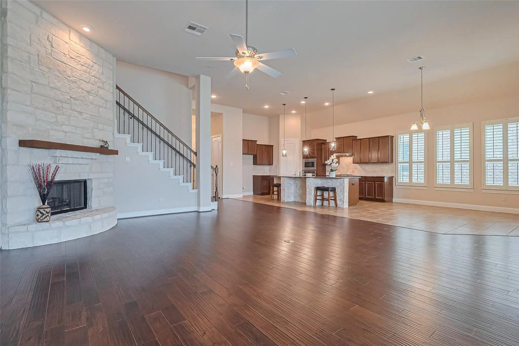 Priced lower than County appraisal.Immaculate home with 3-car garage and brand-new roof (Nov 2024) in sought-after Hawks Landing, zoned to top-rated Katy ISD. Features 4/5 beds, 3.5 baths, a private study, upstairs game room, and a guest suite with en-suite bath. Soaring ceilings, large windows with shutters, and rich wood floors fill the space with light. The open kitchen offers granite counters, stainless appliances, and flows into the family room wired for surround sound. A floor-to-ceiling stone fireplace, and elegant stone accents in the kitchen and dining room.The primary suite boasts a spa-like bath with jetted tub and glass shower. Enjoy a peaceful backyard with no rear neighbors. Low taxes, low HOA, never flooded. Includes washer, dryer, and fridge—move-in ready! Easy access to I-10, Westpark Tollway & Grand Pkwy.
