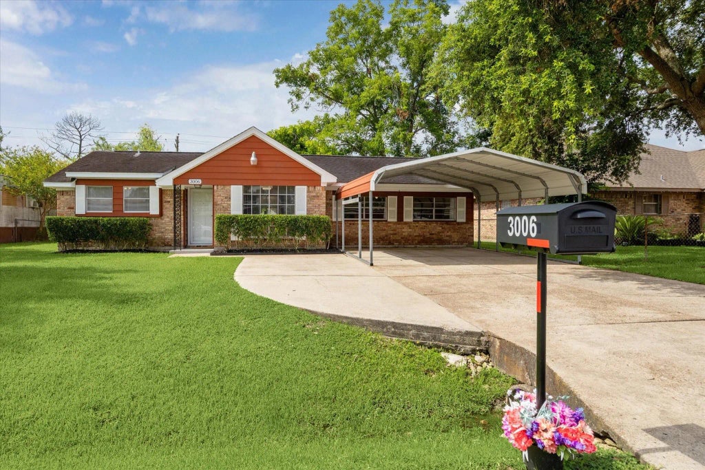 Move-in ready and freshly painted, this charming 3-bedroom, 1.5-bath home features a bright, flowing layout with beautiful laminate flooring throughout. A spacious den provides the perfect space for family gatherings or entertaining guests. The primary bedroom offers a private half bath and walk-in closet. Enjoy the convenience of an indoor laundry room with washer, dryer, refrigerator, and stand-up freezer—all included. Step outside to a covered patio with built-in gas grill, ideal for year-round outdoor living. Additional highlights include a barn-style storage shed, a covered two-car carport, and an extended driveway for extra parking. Benefit from enhanced reliability and security with increased lighting and a shared power grid with the nearby school, helping reduce outages. Located outside the flood zone, this well-maintained home offers comfort, functionality, and immediate occupancy. Lot size/dimensions approximate.
