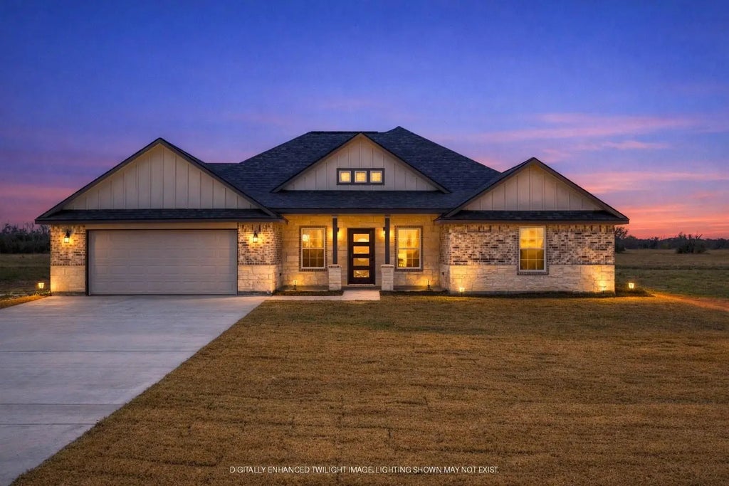 Welcome to this stunning new construction home in Bar X Ranch, set on a spacious one-acre lot. Built by American Crafted Homes, with over 20 years of local experience, this 4-bedroom, 2.5-bath home is crafted with quality and attention to detail. Estimated completion is the end of the year, and buyers who come in early may have the opportunity to select certain finishes. Inside, you’ll find vaulted ceilings with wood beams, a large open kitchen with custom cabinets, stainless appliances, and quartz countertops, plus a bright layout filled with natural light. The primary suite offers a private retreat, while the laundry room and 2-car garage add convenience. Conveniently located just down the street from FM 521 for easy access, yet tucked far enough into the community to avoid road noise. Stair in the garage for attic access. Surrounded by peace, nature, and abundant wildlife, this home blends comfort and convenience. Contact me today with questions or to schedule a tour.