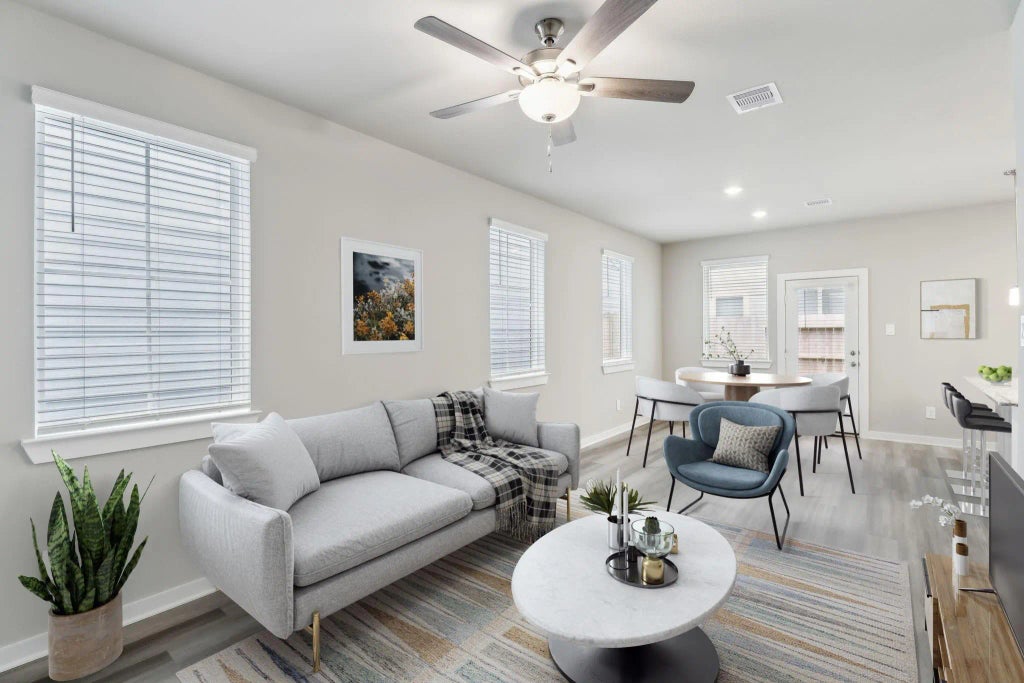 Brand new, energy-efficient home available by Sep 2025! Enjoy family nights in the upstairs versatile loft space of the Winston.White cabinets with white quartz countertops and grey mosiac backsplash, grey tone EVP flooring and multi-tone carpet. This master-planned community is a rare find in Spring Branch. The Townhome Series features a simple buying process with clear pricing and no surprises. With ready move-in homes made up of five two-story floorplans ranging from 1,495 – 2,052 sq. ft., you’re sure to find something you’ll love. Each of our homes is built with innovative, energy-efficient features designed to help you enjoy more savings, better health, real comfort and peace of mind.