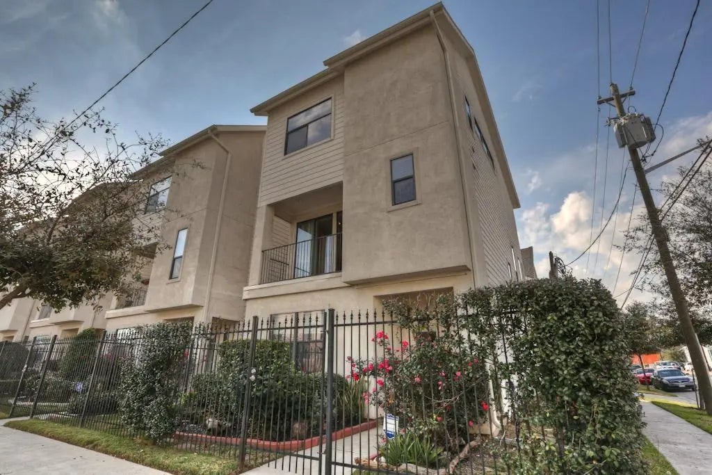 Tri Level Home near Stadium, Discovery Green & within 2 blocks of Rail. Hardwoods in Kitchen & living Area. Kitchen has Granite Countertops & Island w/ Jennair Gas grill. Lots of Cabinets, Double French Door Pantry. Master and 2nd bedroom on 3rd floor. Master bath spa retreat/whirlpool tub/glass shower & double sinks. Utility room on the 3rd floor.3rd bedroom on 1st floor w/separate bath and entrance. Has front and back 2nd level balconies with views. Unit comes with Refrigerator, Stove. Range top, Microwave and Washer/Drye. Water is included in HOA fee. Roof Replaced 12/23. NOTE: Investors only. Tenant occupied at $2275/Mo through 2/28/26. Prequalification required for all appointments.