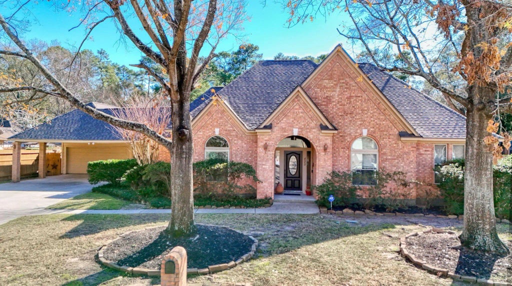Welcome to Champion Lake, where charm meets comfort in this elegant brick home built with pride and quality by GNG Custom Builders. The kitchen features granite countertops, a central island perfect for meal prep or casual dining, and ample cabinetry for storage. The spacious living room is bright and inviting, with large windows overlooking the sparkling pool. A formal dining room adds sophistication, while the primary suite with tall ceilings offers a private retreat. Outdoors, enjoy your poolside oasis with a detached garage that includes a half bath and changing area for added convenience. Pride of ownership shines through with a new roof, low taxes, and the peace of mind of NEVER FLOODING. Ideally located just minutes from The Woodlands’ dining, shopping, and scenic trails, this home blends elegance, comfort, and exceptional craftsmanship—ready to welcome its next owner.