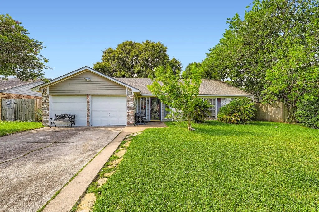 Located near Skyline Dr, Texas City Dike, and Levi Fry Intermediate School, this well-maintained 3-bedroom, 2-bathroom home offers thoughtful updates and inviting living spaces. Step through the beautiful foyer into a living room with soaring ceilings and a cozy fireplace, creating a warm and open atmosphere. The kitchen and dining area feature an open-concept layout, perfect for everyday living and entertaining. The primary ensuite includes a tub/shower combo, while the two additional bedrooms and second full bath offer comfortable accommodations. Recent upgrades include a 2.5-year-old roof, 2-year-old AC unit, and updated water heater and exterior electrical panel (replaced 2.5 years ago). Additional improvements include a new refrigerator water line and chimney enhancements with new flashing, regrouting, and a new cap. Enjoy outdoor living on the wood deck in the fenced backyard, with a two-car garage completing the home’s practical appeal.