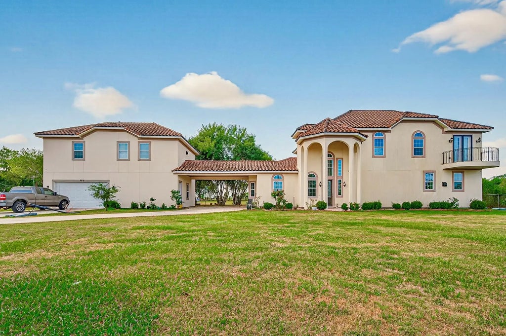 Luxury Living in Rosenberg, Texas. This stunning estate sits on 2 sprawling acres, offering the perfect blend of country style tranquility while being minutes from shopping. In addition to the main home, a 2- bedroom apartment above detached garage- complete with a full kitchen and living area. Perfect for extended family or mothers-in-law suite.