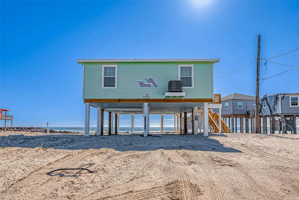"Memory Maker" is such a fitting name. Step off of your stairs onto the beach. This beachside bungalow has been well loved. This 3/2 has been a personal retreat but would make an excellent rental if desired. One bedroom and bath near the front of the house and two bedrooms and hall bath toward the back of the house. The beach is a pedestrian only beach, so no vehicle traffic is permitted on the beach in this area of the island. You can sit on your deck and watch the surfers or large ships coming and going from the jetty. The nearby jetties also offer great fishing. Sales price includes all furniture in the home. This will be your dream home.