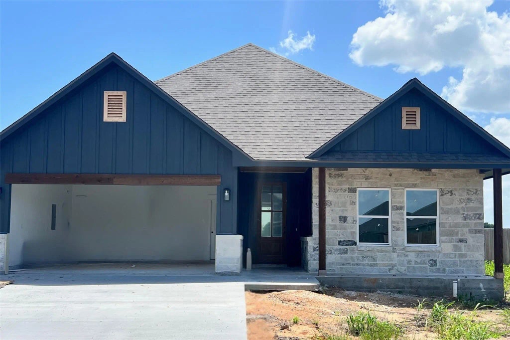 Ready by July! Grand Lake is located in the Heart of Snook, Texas just 10 miles from Kyle Field. Experience custom craftsmanship both inside and out and located on a small cul-de-sac street. This home boasts tall ceilings, and a bright and open floor plan seamlessly connecting the kitchen and dining to the large living room leading to the sunny backyard. This beautiful one-story home features a gorgeous kitchen with plenty of storage and custom cabinetry and vinyl wood flooring. The master bedroom features a spacious ensuite with dual sinks, a shower, a garden tub, and a large walk-in closet that conveniently connects to the utility room. . This home also features: Sprinkler system front and back yard, granite in the kitchen and bathrooms, vinyl wood flooring in the living, kitchen & dining, carpet in bedrooms, tile in baths and utility room, low e windows, recessed lighting throughout, and stainless steel finished appliances. Grand Lake HOA includes high-speed fiber-optic internet!