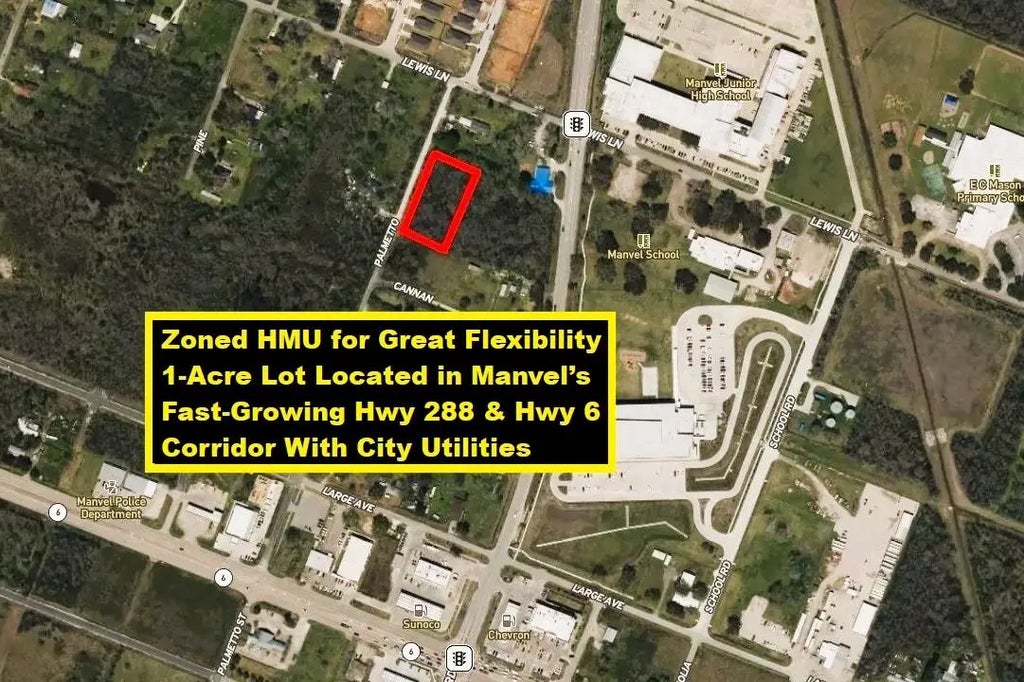 Unlock the potential of booming Manvel! Zoned HMU for great flexibility, this 1-acre lot is ideally located in the fast-growing Hwy 288 & Hwy 6 corridor. Picture building your ideal home or a high-impact office in a community that has experienced remarkable population growth. Part of a larger 3-acre parcel fronting both Masters Road and Palmetto Street, this 1-acre lot can also be divided into four homesites. City water and sewer connections are available, making your development easier. Enjoy excellent access to Hwy 6, Hwy 288, and FM 1128, along with the convenience of Manvel's entire educational system, from elementary through high school (including the JB Hensler College & Career Academy) and emergency services (Police and Fire Departments)—all within two minutes. Houston's Texas Medical Center, Downtown, and Hobby Airport are also within a 20-mile radius. Don't miss this unique opportunity to invest in Manvel's vibrant future.