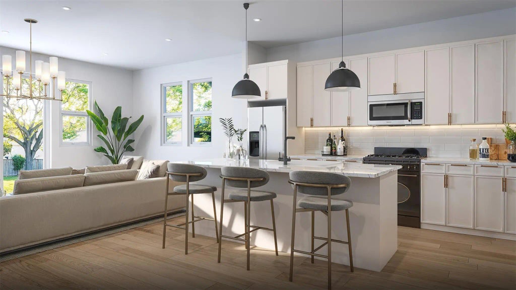 Highland Enclave is a new gated community of sleek, contemporary two-story homes offering 3 bedrooms, 2.5 baths, and approx. 1,750 sq. ft. of modern living. Interiors feature 10’ ceilings, oversized windows, and luxury vinyl plank flooring for a bright, open feel. The chef-inspired kitchen boasts quartz countertops, shaker cabinetry, and stainless steel appliances. Upstairs, the spacious primary suite includes a dual-sink vanity, his-and-hers walk-in closets, and a stylish shower, plus a versatile workspace ideal for a home office or study. Additional features include LED disc lighting, chrome plumbing fixtures, brushed nickel light fixtures, energy-efficient HVAC, smart thermostat, and a landscaped front yard with sprinklers. Homes are under construction, allowing you to choose your finishes. A two-car garage with a smart garage door opener completes the package—style, comfort, and customization in a prime gated setting.