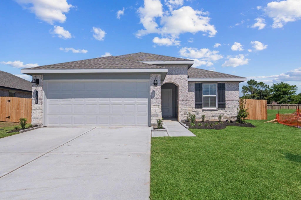 The Baxtor plan in Caldwell Crossing. This charming single-story home offers 3 bedrooms, 2 bathrooms, and a 2-car garage with 1,409 sq. ft. of living space—ideal for your family! Upon entering, you’ll find two secondary bedrooms with carpet flooring, large windows, and spacious closets, sharing a bathroom with a tile tub and vinyl flooring. Across the foyer, the utility room with vinyl floors and space for laundry is adjacent to a linen closet. The open-concept kitchen, family room, and dining room offer a perfect space for gatherings. The kitchen features stainless steel appliances, an island, and a tall pantry. Large windows provide natural light throughout. The primary bedroom is accessed from the dining room and includes two windows overlooking the backyard. The primary bathroom has vinyl floors, a standing shower with large garden tub, a separate toilet room, and a walk-in closet. Enjoy outdoor relaxation on your back patio. Call for a tour today!