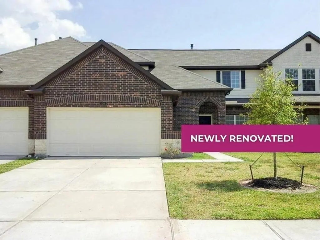 The Bamberg Plan is a beautifully designed two-story townhome offering 3 spacious bedrooms and 2.5 bathrooms. The primary suite is conveniently located on the first floor and features a large walk-in closet for added comfort and privacy. Upstairs, you'll find two additional bedrooms, each with generous closet space—including another walk-in—alongside a full bath and cozy nook. The open-concept main floor showcases stylish wood-grain vinyl plank flooring and a seamless flow from the kitchen to the family room and breakfast area. A fenced backyard, two-car garage, and built-in sprinkler system round out this thoughtfully crafted home. All homes are SimplyMaintained for a $100 monthly fee that includes front and back yard lawn care and exterior pest control. Bavaria Townhomes is a serene and welcoming neighborhood conveniently located in Northeast Houston. Residents enjoy access to community amenities like a clubhouse, pool, walking trails, and green spaces.