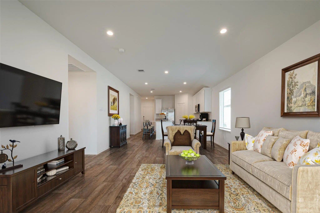 Welcome to your new home in the lovely Tamarron community! This well-maintained single-story Dalton floorplan by D.R. Horton offers 4 bedrooms, 2 full bathrooms, and 1,544 sq ft of comfortable living space. Enjoy an open-concept layout with a spacious living, dining, and kitchen area featuring granite countertops, stainless steel appliances, and large windows overlooking the covered patio. Luxury vinyl plank (LVP) flooring runs throughout the home. The primary suite and additional bedrooms are conveniently located adjacent to the main living area. The home features a classic brick exterior and access to Tamarron’s top-notch community amenities, all within the rapidly growing city of Fulshear. Don’t miss the opportunity to lease this beautiful home in a fantastic location!