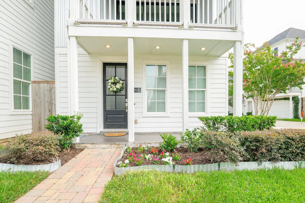 Beautiful InTown Home in desirable Kolbe Farms. Large corner lot with lush landscape, inviting front porch, full yard sprinkler and quick access to Kolbe Farms amenities. This freshly painted, new designer wood flooring boasts secondary with ensuite bathroom room on the first floor and access to the two-car garage. Second floor has open concept living area with 12' ceilings, walls of windows bringing in natural light and Tri-paneled sliding glass doors leading to spacious balcony.