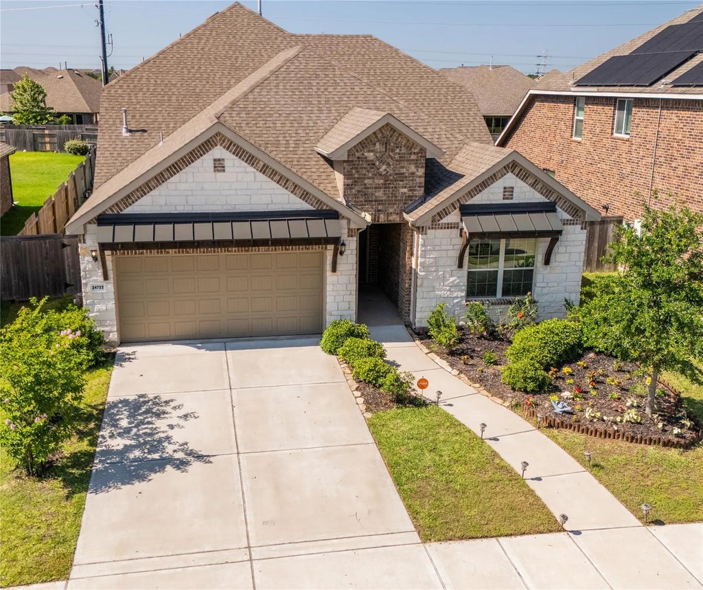 This upgraded 4-bedroom, 3-bath home offers 3,279 sq ft of modern living on a 9,859 sq ft lot at the back of a quiet neighborhood. From the curb, it looks like a one-story, but inside you'll find a dramatic split-level entry and an open, flowing layout. The main floor features a spacious primary suite with bay windows, double-sink bath, soaking tub, separate shower, enclosed toilet, and a rare 15x9 walk-in closet—only found in this home thanks to a builder’s flex plan. A second bedroom and full bath are also downstairs. The upgraded kitchen features quartz counters and a large island that comfortably seats five. Upstairs offers two more bedrooms, another full bath, a linen closet, and additional storage. The main floor includes two storage closets, a pantry, and under-stairs closet. Enjoy a dedicated laundry room, mudroom, and an office/den. The open living area and oversized backyard make this home perfect for relaxing or entertaining.