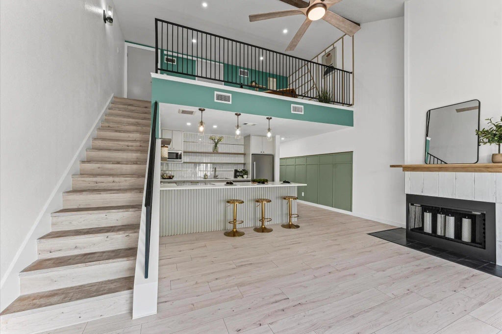 Welcome to this beautifully renovated 1 bed, 1 bath second-floor condo located in a quiet gated community! This stylish home features brand-new laminate flooring throughout, custom cabinetry in the kitchen, bedroom, living room, and laundry room, and upgraded electrical outlets in every major space. The kitchen is fully equipped with stainless steel faucet, dishwasher, electric range, microwave, refrigerator, garbage disposal, and modern pendant lighting. The living room offers a cozy fireplace mantel, wood countertop, and ceiling fan with light. The bathroom has been completely updated with new shower tile, pan, head, vanity, faucet, and lighting. Enjoy raised ceilings, updated door hardware, and flush ceiling lights throughout. Additional upgrades include a new A/C unit with ductwork, thermostat, and laundry countertop. Relax on your private covered back patio—perfect for morning coffee or evening unwinding!