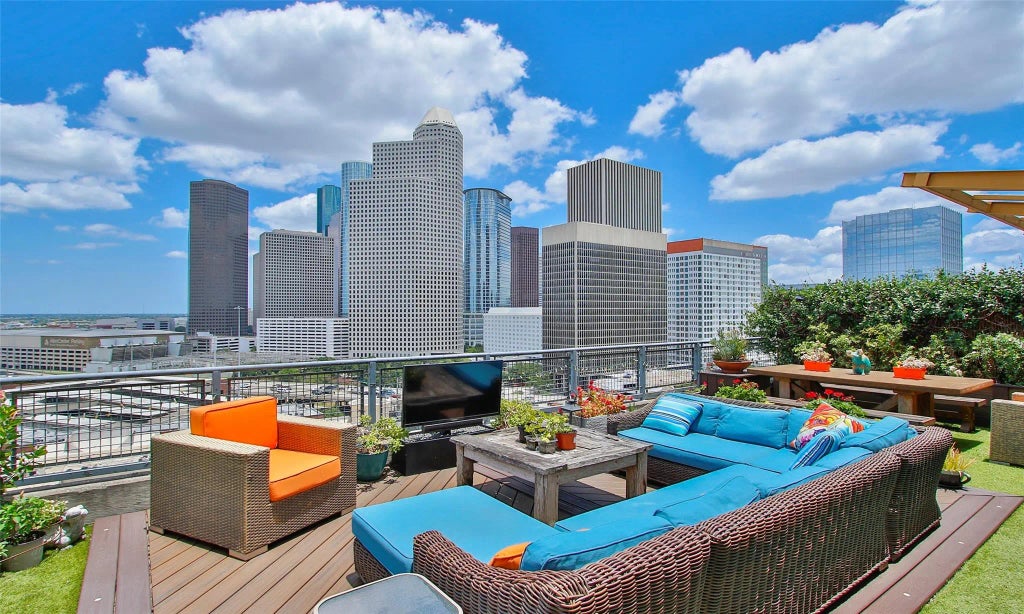 This exquisite Penthouse w/ Stunning Downtown views and massive 800 SF Private terrace is an entertainers dream home. Loft was completely renovated with luxurious high end finishes. Wood flooring, 15' ceilings, Exposed ductwork, and Designer paint showcase this open and versatile floor plan. Chef's kitchen features Quartzite counters, custom cabinetry, & SS GE Monogram appliances. Modern Elegance abounds in the spa-like baths featuring Kohler programable Rain Shower, Alex Turco Designer Wall Art, Mosaic tile accents, Restoration Hardware lighting, and Closet Factory custom designed closets. Legrand Adorne dimmer switches. 'Fully decked' terrace features Trex decking, Sierra turf, bamboo fencing, TV mount w/ all weather Sunbrite TV, & outdoor kitchen. Patio furniture INCLUDED! 2 assigned parking spots. Located in the heart of Midtown you are close to restaurants, parks, bars, and more. One of only 4 Penthouses. Experience luxury loft living at it's finest!