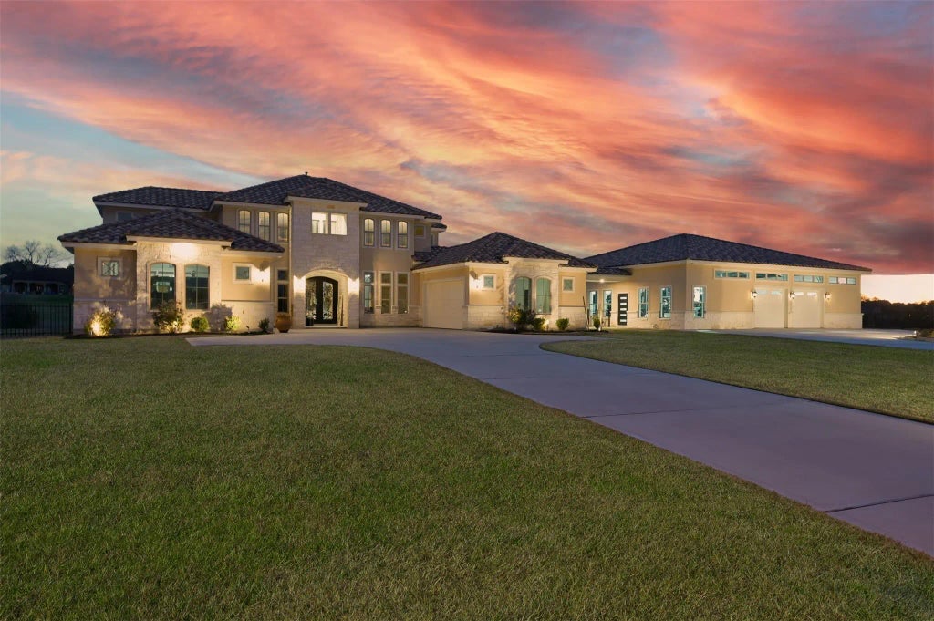 As you enter this exquisite Island of Grand Harbor Waterfront Custom Home through the rod iron double doors, you will see abundant natural light throughout the house. Beautiful tile floors with high quality wood floors upstairs. Ultimate Large glass sliding doors that lead outside to a gorgeous pool, outdoor kitchen, and fireplace. The enormous 8 car detached garage has a full kitchen, full bathroom, electric car charger fully air-conditioned , 12'BAF ceiling fans. Home has a water softener with extra high-capacity water filter system.12' BAF ceiling fans, wireless electric blinds, underground electric dog fence, and the list goes on and on. Additional 1.5 acres available for sale. The property is currently 2.5 acres total and completely fenced and only pay 1 HOA fee for all 5 lots. Generator powers both the house as well as the garage. Here is an opportunity to own up to 5 waterfront lots on the exclusive Island of Grand Harbor.