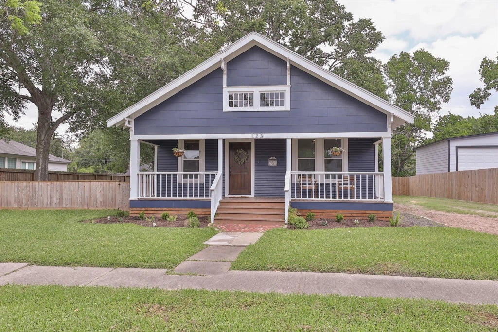 Cozy 1920 Imperial Sugar bungalow! Total renovation in 2024. Charming open den/dining/kitchen with two bedrooms and full bath on large .23 acre lot. Kitchen with pot filler, farm house sink, gas range, quartz counters and island. Bath has separate shower and vintage claw foot tub. Original metal roof coated will likely last another 100 years! PEX Plumbing. No HOA/Deed Restrictions but there is zoning with light conservation for The Hill, Sugar Land's first community! Close to 90A, Space Cowboys Constellation Field, museums, farmers market, local community winery, parks, churches and schools. Step back into time with a charming walkable community with Acorn Lamp posts, mature trees and front porch living! Easy living!