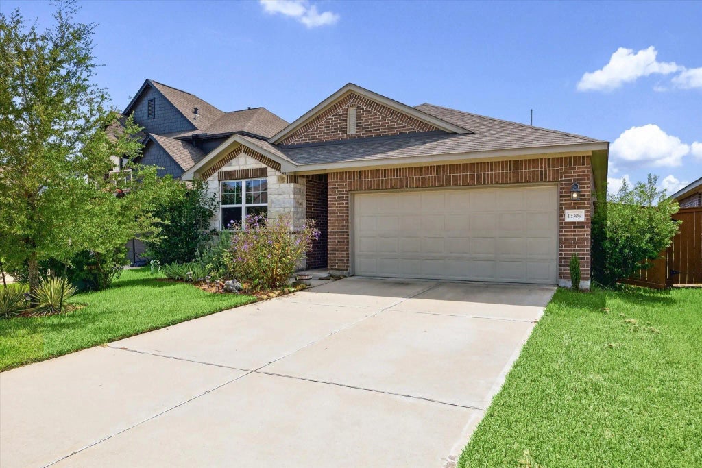 Welcome to 13309 Emerald Mallard Dr, located in the tropical, luxurious community of Lago Mar! This Ashton Woods home built in 2021 still feels brand new and showcases thoughtful upgrades throughout. The open-concept floor plan offers spacious living areas filled with natural light, while the chef's kitchen features a large island, quality appliances, and upgraded 42" shaker style cabinets. The primary suite provides a peaceful retreat with a luxurious ensuite bathroom, complete with a soaking tub and ample closet space. Three additional bedrooms offer flexibility for guests, a home office, or storage space. Finally, step outside to a covered patio overlooking the private backyard with a custom wood-burning oven - ideal for relaxing evenings or weekend gatherings. Designed with efficiency and style in mind, this home delivers low-maintenance, luxury living and quick access to shopping, dining, and I-45. Lagoon is included for residents, & check out the two swimming pools & park areas!
