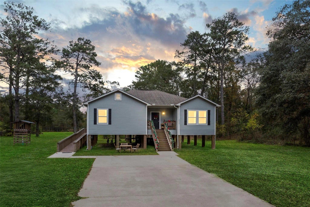 Prime Location!! 2.5 Acres of Unrestricted Land & Low Property Taxes!! Charming 4-bedroom single story home set on 2.5 acres of unrestricted land. Open concept design interior with a large living/dining area. Features:vinyl and tile flooring and ceiling fans in each room. Efficient kitchen with Formica counters. Large owner’s retreat with private bath and shower/tub combo. Home built in 2020 and is ADA compliant. Well & Septic so no water bill, underground Fiber-Optic Internet. Exterior features include: 25 foot wide driveway with RV parking and plug, Additional electrical box/outlets in the yard area that are structure ready and outlets under the main home, mostly gated and cleared, designated light pole.Home is built above flood level. Conveniently located just minutes from I69 & TX-99. Additional Schools to be built in the coming years. Schedule your private showing!