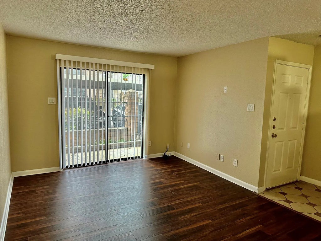 THIS LOVELY GROUND LEVEL 2-1 IS READY TO GO!!! 2-TONE PAINT, LAMINATE FLOORS THROUGHOUT AND TILE IN THE KITCHEN/VANITY/BATH (W/JETTED TUB/SHOWER COMBO). GALLEY KITCHEN WITH STAINLESS APPLIANCES, GRANITE COUNTERTOPS AND CONTEMPORARY GLASS BLOCK ACCENTS DIVIDING THE KITCHEN FROM THE LIVING AREA, AND SLIDING DOOR FROM THE LIVING AREA TO THE PATIO. WASHER/DRYER AND WATER PROVIDED. QUIET/GATED COMMUNITY WITH SCHEDULED MANNED GATES, ONE ASSIGNED/COVERED PARKING SPACE, GUEST PARKING SPACES AVAILABLE. 2 POOLS ON PROPERTY, ACROSS HOLLY HALL FROM THE WALKING/BIKE LANE TO THE METRORAIL, BUS #60 TO BAYLOR AND TMC AREA STOP IS ACROSS FROM THE ENTRY GATE.