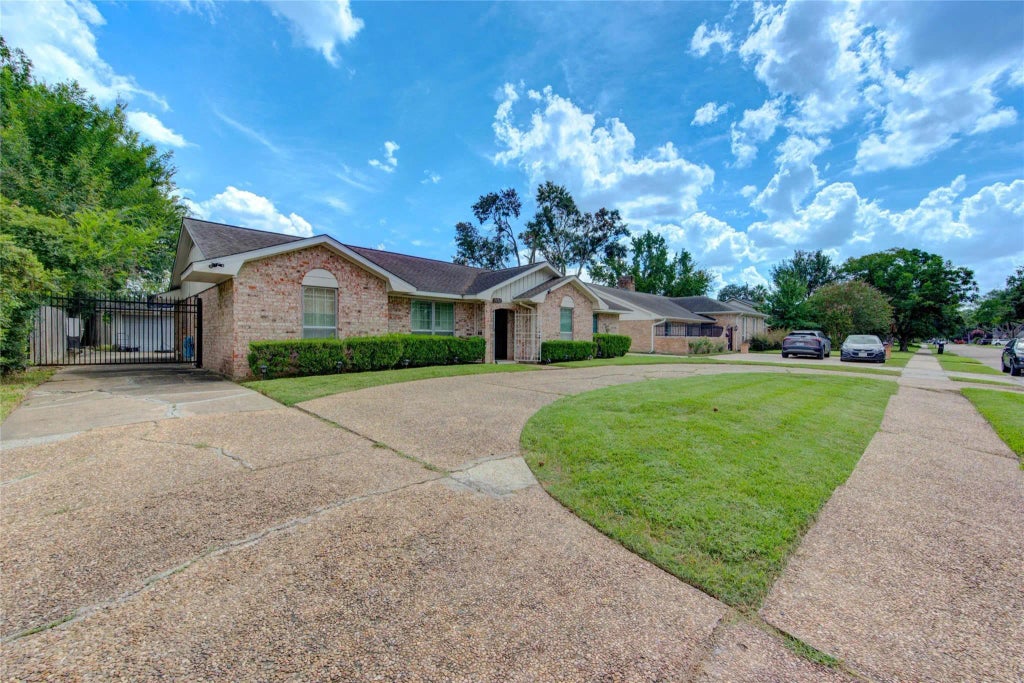 Step inside and prepare to be floored. The family room is an architectural masterpiece, with soaring vaulted ceilings and dramatic dark wood beams that command attention. A stunning crystal chandelier hangs from the peak, centered over a classic brick fireplace. This is an entertainer's dream. The open layout flows effortlessly from the formal living and dining rooms to a chef's kitchen boasting sleek granite countertops, stainless steel appliances, and a dedicated bar area. But the main event? Step outside into your backyard oasis. Dive into the sparkling, resort-style swimming pool, relax in the integrated spa, or host epic barbecues on the patio. All surrounded by lush, mature trees offering total privacy on this massive 9,496 sqft lot. This 3-bed, 2-bath home offers 1,850 sqft of pure style and opportunity. A grand horseshoe driveway provides impressive curb appeal and ample parking for all your guests. Mid-century character fused with modern luxury is a rare find.