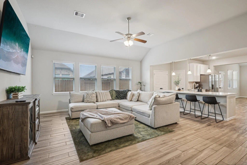 Welcome to 8419 Sunset Horizon in the desirable Hunters Creek community! This stunning one-story brick home with stone accents offers 4 bedrooms, 2.5 baths, and a 2-car garage. Built in 2022, it boasts an open-concept layout with high ceilings, tile floors, and energy-efficient features throughout. The gourmet kitchen shines with granite countertops, maple cabinets, farmhouse sink, and a gas range, opening to the spacious family room—perfect for entertaining. Retreat to the primary suite with a huge walk-in closet, soaking tub, and separate shower. Secondary bedrooms are generously sized with double-sink bath access. Enjoy evenings on the covered patio overlooking a fully fenced backyard. Conveniently located near I-10, shopping, dining, and top-rated Goose Creek ISD schools, this move-in ready home offers incredible value and lifestyle.