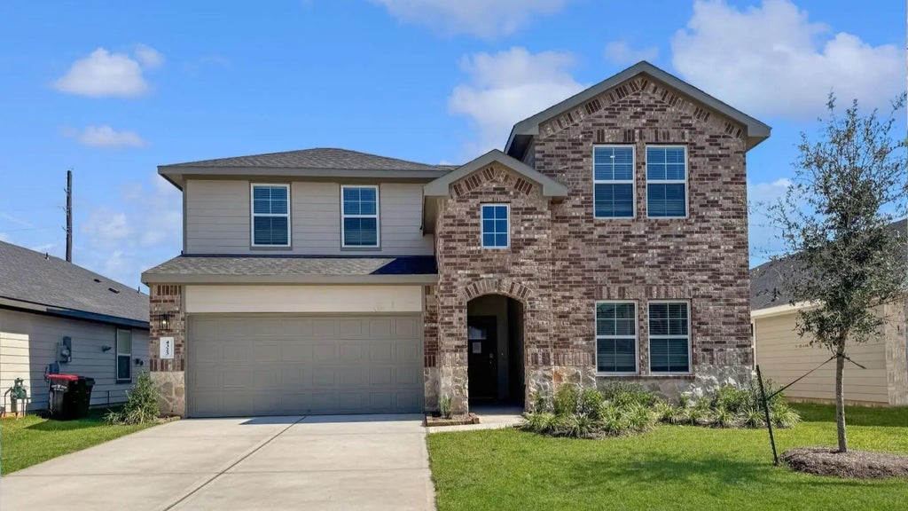 Welcome to D.R. Horton's Ozark floorplan, located in the beautiful community of Tamarron. This 2 story floorplan has many great and unique features to offer across its 2475 sqft, including 4 bedrooms (2 up, 2 down), 3 full bathrooms, and an upstairs game room. This home opens up into the open concept kitchen, living and dining area featuring granite countertops, stainless steel appliances, and large windows looking out into the covered back patio perfect for entertaining. adjacent to the family room is the primary suite with standing shower, bathtub and dual sinks. Upstairs you will find the remaining 2 bedrooms as well as the large gameroom. LVP flooring can be seen throughout the home. The more traditional face of the home is constructed of stone and brick. Tamarron is the place to be, with great community amenities and great location in the growing city of Fulshear. *Images and 3D tour are for illustration only and options may vary from home as built.