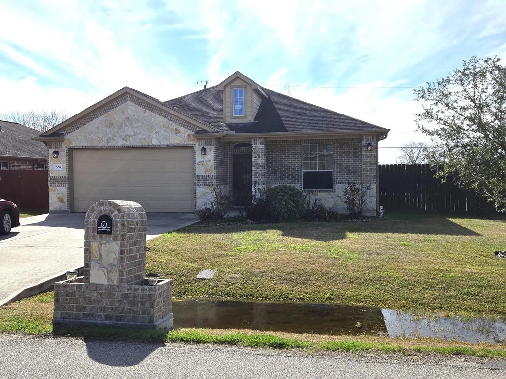 Beautiful 1-Story Home with covered Porch and stone facade. Enter into foyer, formal dining room and hallway that leads to large living room space and entertainment with custom built-in wall cabinetry. Opens to Kitchen with custom built cabinetry, appliances and sink by window. Note there is no refrigerator provided. Primary bedrooms suite, double vanities and walk-in closet. Another hallway leads to 3 secondary bedrooms; full bathroom; linen closet; and utility room. Backyard covered Porch with extended stamped cement patio; outdoor bar; tool shed and big side yard as well for family gatherings. House is built on higher elevation level, Prewired for Surround Sound, Alarm System and Security Cameras. Located in Pinedale Manor and zoned to Fort Bend ISD. Easy Access to Hwy 6, FM 521 and Hwy 288.
