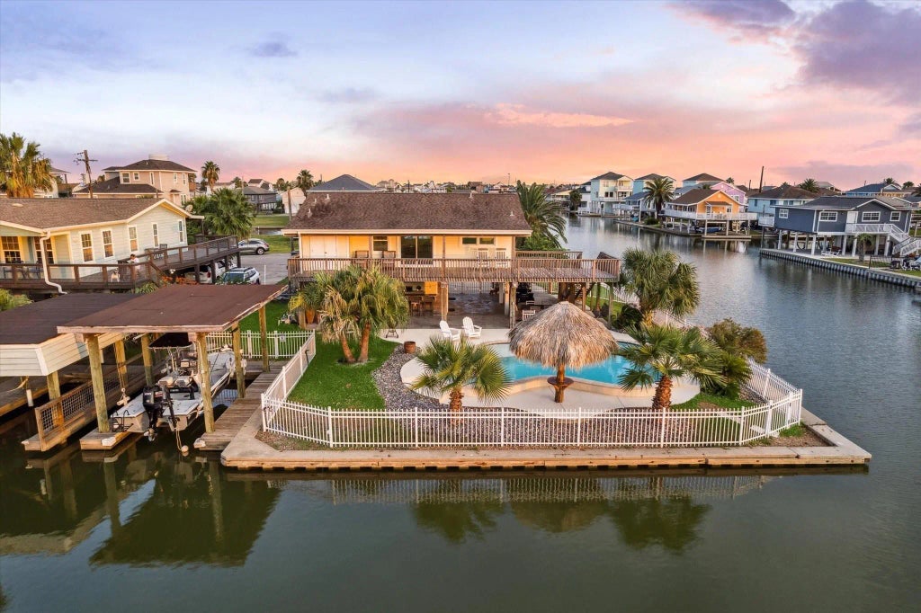 Welcome to your coastal retreat! Situated on an oversized corner canal lot at the end of a quiet cul-de-sac, this beautifully furnished bay home blends comfort, charm, and endless outdoor living. The ground floor is built for entertaining—complete with a Tiki lounge, dining space, and a grandfathered insurable bedroom and bath. Step outside to your private pool with expansive water views, or stroll down the dock for kayaking, fishing, or boating right from your backyard. Upstairs, the main living spaces open to a wide deck where you can take in panoramic sunsets over the bay. Inside, you’ll find 3 bedrooms, 2.5 baths, and an open-concept layout with bright coastal finishes that perfectly frame the views. This home is currently being used as an income property, but it’s easy to see how you could enjoy it as your own getaway. The lifestyle here is as refreshing as the pool—don’t miss your chance to call this canal-front oasis your own!