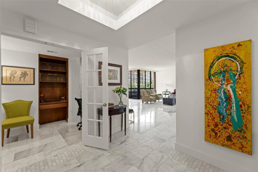 Welcome to this elegant remodeled unit in the townhouse section of the St James. Featuring marble floors, a sleek custom mini bar, and abundant windows for natural light. The kitchen boasts a granite and marble backsplash, stainless steel appliances, and modern cabinetry. This unit includes a 3rd bedroom, designed to adapt it to your life style. You will appreciate the comfort and privacy, the outdoor balcony, the efficient office space by the entrance, a discreet utility room, and the private entrance. The grand room offers a great flow between living/dining room, and kitchen area, ideal for social interaction when entertaining family and friends. The large primary bedroom includes a spacious bathroom with standing shower and two closets spaces combining luxury and convenience in this well-designed home. Enjoy the convenience of living in a full service building and amazing amenities. Heated pool, pickle ball and tennis courts, concierge and valet parking 24/7.